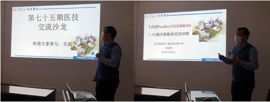 2020年4月29日下午四點半,我院醫(yī)學影像科CT/MRI診斷專業(yè)組在腦科樓CT室示教室舉辦了第75期“醫(yī)技交流沙龍”活動,本次會議由院長助理兼CT/MRI室主任劉連鋒同志主持召開,分享及交流我科室飛利浦Prodiva與GE-MR360兩臺1.5T磁共振設備的臨床應用對照,對我科室人員進行關于兩臺設備的掃描參數及圖像質量進行分析及普及。