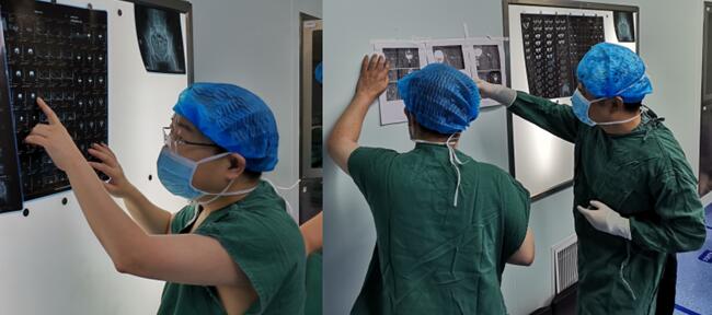 王永主任、侯曉進主任術(shù)前再次確認患者手術(shù)體位及術(shù)中透視要求