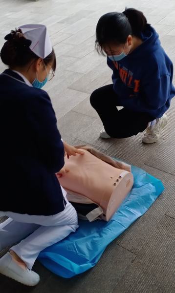 十一月的天氣,刺骨的寒風(fēng)呼呼地吹著,不時的向行人襲來,但也不能抵擋我們?yōu)椴∪朔?wù)的腳步,活動現(xiàn)場為廣大群眾提供了多項公益項目,擺放的急性心肌梗死健康知識展架,簡單易懂、圖文并茂的宣傳手冊,精神風(fēng)貌良好的醫(yī)護團隊無不顯示著我們的精心準(zhǔn)備。義診開始,大家秩序井然依次進(jìn)行咨詢服務(wù)、血壓的測量、心電圖檢查、普及胸痛知識等,同時還組織了醫(yī)務(wù)人員現(xiàn)場進(jìn)行心肺復(fù)蘇技能示教,吸引了來往患者觀摩學(xué)習(xí)。