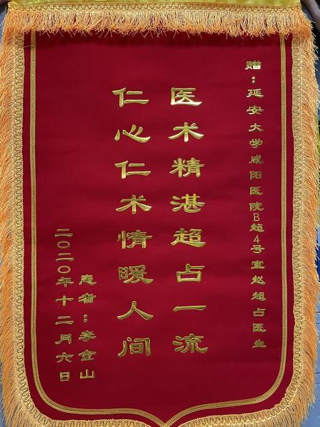 2020年12月11日下午,超聲科診室門口上演了溫馨一幕:患者李某攜其家屬捧著“醫(yī)德高尚,瞾星無雙,醫(yī)術(shù)高明,妙手回春”、“醫(yī)術(shù)精湛,超占一流,仁心仁術(shù),情暖人間”的錦旗,再三感謝趙超占醫(yī)生和南曌星醫(yī)生對其疾病的精確診斷以及無微不至的關(guān)懷?;颊呒覍俦硎荆夯叵氪舜尉驮\經(jīng)歷,感嘆過程驚心動魄,是你們認真負責的工作態(tài)度和精湛的醫(yī)術(shù)救了我家老頭子,而且也改變了我們對醫(yī)生們的一些偏見,非常感謝醫(yī)院培養(yǎng)出這么優(yōu)秀的員工和優(yōu)秀的團隊,太謝謝你們了!
