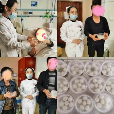 “沒想到住院還能吃上你們送的湯圓,吃在嘴里,甜在心里!”每個患者連聲說著類似感謝的話語。病房里洋溢著溫暖和歡笑,看似小小的湯圓,傳遞著醫(yī)護(hù)人員滿滿的愛,讓患者忘了病痛。