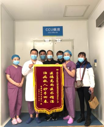 2月25日上午,李新國主任接過賀先生一家送來錦旗,上面用燙金大字寫著“醫(yī)德高尚,醫(yī)術(shù)精湛,治病救人,妙手回春”,這是一面寫滿責(zé)任和信任的錦旗,同時(shí)也是承載著患者對CCU全體醫(yī)護(hù)人員的認(rèn)可與鼓勵(lì)。