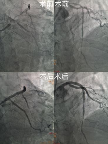 事情要從1月前開始說起,賀先生因“急性心肌梗死合并心力衰竭、心源性休克”轉(zhuǎn)入了CCU病區(qū),家屬還在回憶著當(dāng)時(shí)賀先生大口喘著氣,憋得顏面發(fā)紫,全身大汗,情況非常危急,CCU的護(hù)士對這樣的場景已經(jīng)是再熟悉不過來,立即給予監(jiān)測生命體征,建立生命通路,準(zhǔn)備呼吸機(jī),工作在有條不紊的進(jìn)行著……“血壓80/50mmHg,血氧飽和度為81%!”護(hù)士第一時(shí)間向醫(yī)生匯報(bào)了情況,有著豐富急診手術(shù)經(jīng)驗(yàn)的李新國主任再次對患者病情進(jìn)行了評估,目前急性廣泛前壁、右室心肌梗死合并心源性休克,冠脈造影提示,冠脈三支血管嚴(yán)重病變,左主干80%狹窄,前降支近段99%狹窄,第一對角近段90%狹窄,中段95%狹窄;前降支中段90%狹窄,遠(yuǎn)段100%閉塞;右冠全程彌漫性病變,最重90%狹窄,房室支近段100%閉塞。雖然有外科搭橋的指征,但目前心肌梗死的急性期同時(shí)合并嚴(yán)重的心衰,外科開胸手術(shù)的難度和風(fēng)險(xiǎn)是可想而知的。介入手術(shù)開通罪犯血管可能是患者能存活下去的唯一機(jī)會,但與此同時(shí)也存在著巨大的風(fēng)險(xiǎn),李新國主任及蔡婉君主管醫(yī)生再次與家屬溝通,告知手術(shù)的必要性及存在的風(fēng)險(xiǎn),家屬心急如焚,一時(shí)間很難做出決定。李主任耐心的把目前患者的情況,介入手術(shù)治療的方案,及可能出現(xiàn)情況的預(yù)案,與家屬做了詳細(xì)的介紹,醫(yī)患之間良好的溝通使患者及家屬焦慮的情緒逐漸緩解,也重新樹立起戰(zhàn)勝病魔的決心,面對這位年經(jīng)、知識淵博、技術(shù)精湛的主任,家屬毅然選擇了信任,簽下了手術(shù)知情同意書,同時(shí)也把搶救患者生命的最后一線生機(jī)交付給了延安大學(xué)咸陽醫(yī)院。