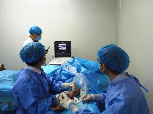 2021年3月29日,延安大學(xué)腎病學(xué)科王衛(wèi)軍主任在西安交通大學(xué)第一附屬醫(yī)院楊世峰教授的指導(dǎo)下,成功完成腎病學(xué)科首例B超引導(dǎo)下的“內(nèi)瘺血管狹窄球囊擴(kuò)張術(shù)(PTA)”?;颊咴谛g(shù)中、術(shù)后反應(yīng)均良好。該手術(shù)的成功標(biāo)志著腎病學(xué)科在血液透析血管通路技術(shù)方面又邁上一個(gè)新的臺(tái)階。