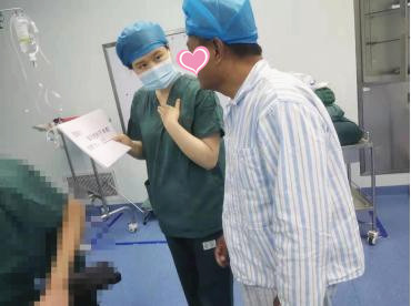 大家的努力顯而易見,4月14日該患者進入手術(shù)室,護士們每一個操作環(huán)節(jié)通過手語和文字與患者進行溝通,大大的減輕患者對陌生環(huán)境所帶來的恐懼和無助。他們耐心細致的解釋和關(guān)懷,讓患者流露出親切的微笑和柔和的目光,并不斷豎起大拇指感謝!手術(shù)順利完成,患者家屬臉上也洋溢著滿意的笑容。他們雖生活在無聲的世界,但他們微笑著傾聽這看似嘈雜卻無聲的生活;他們不能說話,但醫(yī)務(wù)人員一次次耐心體貼的問候,使每一個有特殊困難的患者倍感溫暖,往往一個動作一個眼神的展現(xiàn)對于每一位聾啞患者來說就是莫大的安慰!