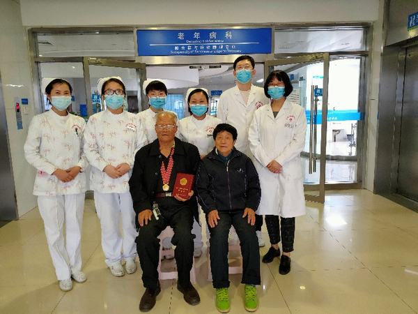 老先生是抗美援朝時期的英雄,佩戴的是2020年10月24日由中共中央頒發(fā)的中國人民志愿軍抗美援朝出國作戰(zhàn)70周年紀念章。我們親切的稱呼老人為“最可愛的英雄”,老人笑瞇瞇的說,你們是擁軍的代表,你們也是英雄,住院期間你們無微不至的關懷與關愛,使我們的心暖了,病好了!