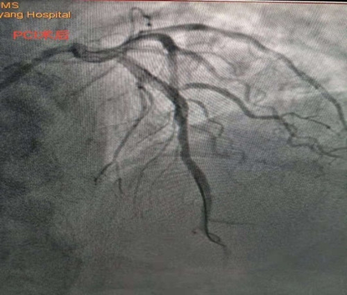 李新國主任為蒿大叔做了急診冠脈造影檢查,提示前降支近中段90%狹窄, D1開口99%狹窄,可見血栓影,結(jié)合術(shù)前心臟超聲檢查發(fā)現(xiàn)患者心臟腱索水平以下左室前間壁、前壁、前側(cè)壁運動搏幅減低,梗死范圍大,考慮罪犯血管為前降支近中段,在前降支近中段植入了一枚支架,開通閉塞血管。經(jīng)過1個多小時的搶救,蒿大叔總算從鬼門關(guān)被救了回來了。