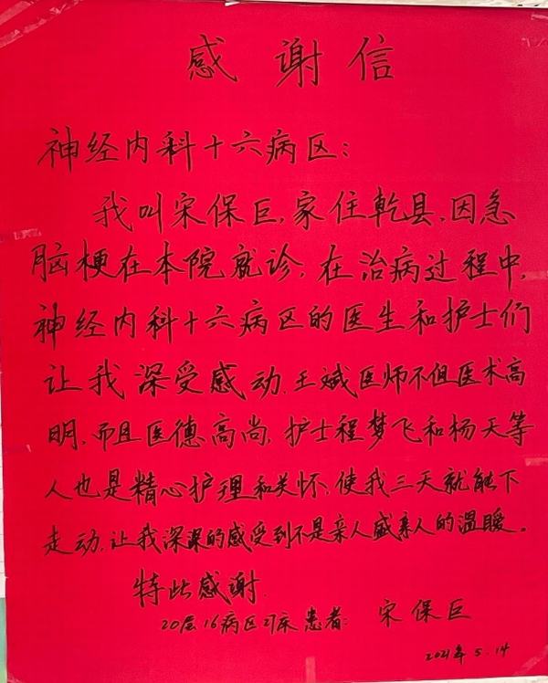 他們是入職兩年的王斌醫(yī)生、身懷六甲的程夢(mèng)飛護(hù)士,病愈剛出院的楊天護(hù)士……,“情況各異”的他們有一個(gè)共同的代名詞—青年醫(yī)者,共同的初衷—醫(yī)者仁心。這不,入院的17床何叔叔,時(shí)值中年,診斷為腦梗死急性期,心理的沖擊可想而知,楊天護(hù)士用自己心理學(xué)方面的知識(shí)疏導(dǎo)患者,緩解病人的焦慮,王斌醫(yī)生細(xì)致入微的詢(xún)問(wèn)病史,明確病因,針對(duì)性的落實(shí)治療方案,讓患者積極的面對(duì)疾病,最終得以病情好轉(zhuǎn)出院。無(wú)獨(dú)有偶,27床大爺,突發(fā)左側(cè)肢體活動(dòng)不能入院,還伴有糖尿病,得病初期,大爺難以接受,脾氣暴躁,不愿與人交流,王斌醫(yī)生就在查房過(guò)程中,向患者詳細(xì)講解病情,利用案例樹(shù)立大爺醫(yī)治疾病的信心,王斌醫(yī)生根據(jù)基礎(chǔ)疾病制定大爺?shù)膶?zhuān)屬治療方案;程夢(mèng)飛護(hù)士給予大爺指導(dǎo)糖尿病的飲食要求,大爺年紀(jì)大,記憶力減退,為了防止大爺漏監(jiān)測(cè)血糖,程夢(mèng)飛護(hù)士不厭其煩的提醒大爺按時(shí)監(jiān)測(cè)血糖,講解血糖監(jiān)測(cè)的重要性。溫情的服務(wù)讓患者如沐春風(fēng),大爺在醫(yī)護(hù)人員的細(xì)心照顧下,從一開(kāi)始的生活不能自理到入院3天即可緩慢行走。他們年輕,但是工作質(zhì)量卻沒(méi)有任何縮水;他們年輕,但是優(yōu)質(zhì)的服務(wù)卻沒(méi)有折扣;他們年輕,但是醫(yī)者的初心卻沒(méi)有任何改變。
