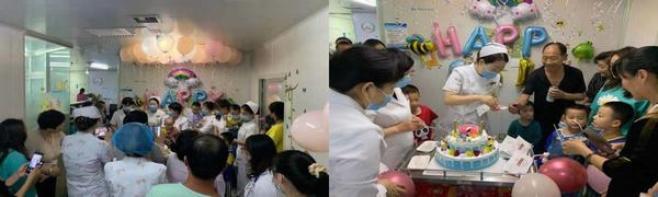 當(dāng)醫(yī)護(hù)人員把蛋糕送到孩子們面前時(shí),一下子就吸引了小朋友的目光,孩子們開心的拍著手,我們醫(yī)護(hù)人員與孩子們拍照,給孩子們擁抱,給孩子們發(fā)送他們喜歡的氣球,孩子們開心又滿足,有的甚至嬉鬧起來,似乎已經(jīng)忘了身體不適。