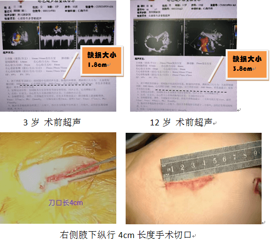 科室給予評估后,告知患兒家屬可行外科小切口房間隔缺損修補術,切口長度在4cm,縱行腋前線,損傷小,不破壞骨質連續(xù)性,術后恢復快,正面觀平整,女性發(fā)育后不影響乳房發(fā)育,達到良好的手術效果同時滿足追求愛美之心,但手術較常規(guī)開胸手術的技術要求高,必須有經(jīng)驗豐富的主刀醫(yī)生和團隊才能取得良好的效果。兩位患兒均由武小剛主刀醫(yī)生手術,一切準備就緒后擬行了手術治療,全程手術不到三小時,術后均10天出院,獲得良好的效果,家屬滿意,患者更能夠在將來有個美好的未來。