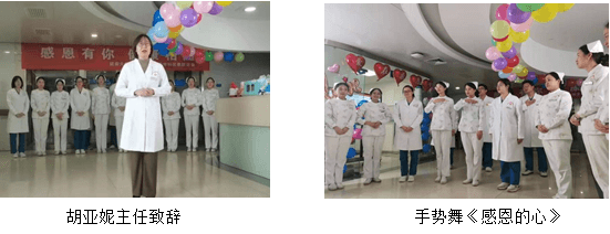 晚會(huì)一開始,胡亞妮主任致辭,她代表科室全體人員感謝各位患者朋友對(duì)延安大學(xué)咸陽(yáng)醫(yī)院的認(rèn)可,和對(duì)康復(fù)醫(yī)學(xué)科的信任,并鼓勵(lì)患者增加康復(fù)的信心。隨后醫(yī)護(hù)人員為患者們表演了一段手勢(shì)舞——《感恩的心》,感動(dòng)了所有在場(chǎng)的患者及家屬。