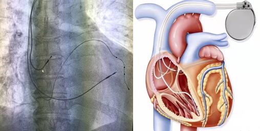 考慮到患者目前存在心功能不全,且新四聯(lián)藥物治療后效果欠佳,植入傳統(tǒng)雙腔起搏器完全右室起搏可能會(huì)導(dǎo)致心功能惡化,且2021年ESC指南也將這類患者CRT(心臟再同步化治療)適應(yīng)癥由2013年ESC指南 IIa推薦升級(jí)為I類推薦。經(jīng)全科醫(yī)生討論下,決定為患者行三腔起搏器植入術(shù)。