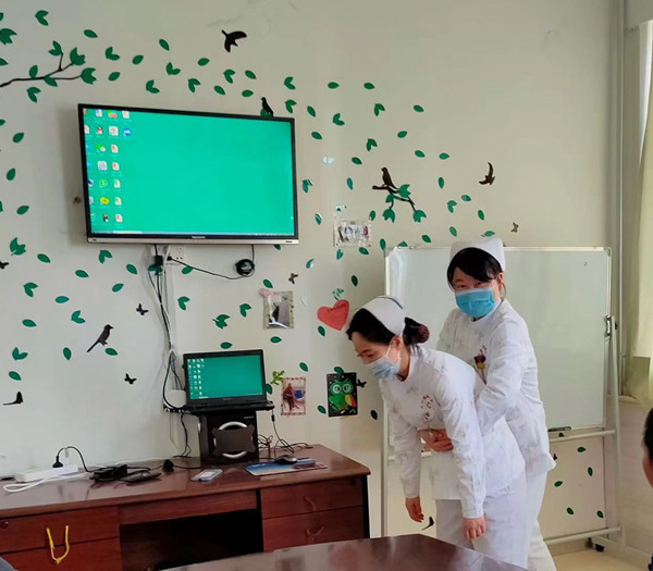精神科患者服用抗精神病藥物常見(jiàn)的副反應(yīng)之一為吞咽困難,可能導(dǎo)致咳嗆或噎食,是危及患者生命安全的原因之一。為普及海姆立克法,提高患者及家屬自護(hù)、救護(hù)能力,在云科普節(jié)目后,王歌主管護(hù)師向患者講述了海姆立克法的原理,護(hù)士長(zhǎng)薛娜與王歌詳細(xì)講解了海姆立克法的步驟及動(dòng)作示范,并觀看視頻播放,從而讓在場(chǎng)家屬及患者更好的理解、學(xué)習(xí)海姆立克法。
