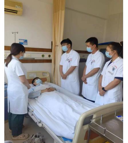 教學(xué)查房是臨床實踐教學(xué)的重要環(huán)節(jié),是培養(yǎng)醫(yī)師臨床基本技能和臨床思維能力的有效途徑;是臨床教學(xué)質(zhì)量和醫(yī)療業(yè)務(wù)能力水平的體現(xiàn);也是臨床教學(xué)工作的重要內(nèi)容之一。為促進(jìn)臨床教學(xué)工作持續(xù)有效的發(fā)展,規(guī)范教學(xué)查房流程,提高臨床教學(xué)查房質(zhì)量,2022年6月29日在消化內(nèi)科二病區(qū)進(jìn)行內(nèi)科病院教學(xué)查房觀摩活動;此次活動由內(nèi)科綜合辦組織,張維副院長、內(nèi)系各科室主任、消化內(nèi)科二病區(qū)全體醫(yī)生、規(guī)培生及護(hù)士長和責(zé)任護(hù)士共計20余人參加本次教學(xué)查房。