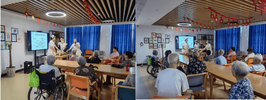 首先由國家級(jí)心肺康復(fù)??谱o(hù)士崔麗利老師通過授課、現(xiàn)場演示,向養(yǎng)老院的老人們傳授適合高齡人群的呼吸訓(xùn)練操,鍛煉呼吸功能。參加科普的護(hù)士現(xiàn)場演示,在座的老人們耐心學(xué)習(xí),現(xiàn)場歡聲一片,氛圍熱烈。