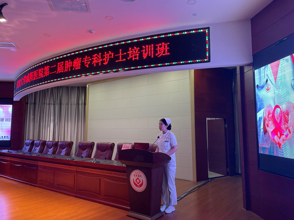 學(xué)員代表口腔科蔣雨晴護(hù)師發(fā)言表示,近年來,腫瘤的發(fā)病率在逐年上升,惡性腫瘤嚴(yán)重威脅著人類的健康和生命。隨著醫(yī)療科學(xué)技術(shù)的發(fā)展,腫瘤的治療藥物及手段也在迅速增加,對腫瘤??谱o(hù)士的技能要求愈來愈高,作為一名腫瘤專業(yè)護(hù)理學(xué)員代表,鄭重承諾在此次學(xué)習(xí)期間認(rèn)真學(xué)習(xí)、刻苦鉆研,遵守紀(jì)律、自我約束,學(xué)以致用、學(xué)用結(jié)合。在今后的臨床工作中,以專業(yè)的知識(shí),熟練的的技能護(hù)理每一位患者。