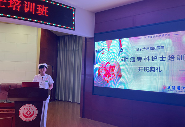首先,延安大學(xué)咸陽醫(yī)院腫瘤內(nèi)科護(hù)士長白潔為開幕式致辭。同時(shí)也對各位學(xué)員表達(dá)了殷切的希望,希望各位通過本次的培訓(xùn)提高我院的腫瘤防治護(hù)理水平,在今后的臨床工作中以更加積極主動(dòng)的工作態(tài)度,扎實(shí)牢固的操作技能,豐富的理論知識(shí),為腫瘤護(hù)理事業(yè)的整體發(fā)展盡綿薄之力。