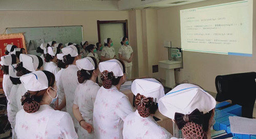 責任護士馬巧麗對患者基本資料、病史、評估、診療過程等進行詳細介紹,并提出了該患者護理過程中遇到的困惑和護理難點,討論現(xiàn)場大家積極發(fā)言,充分發(fā)揮??铺亻L,相互交流探討,指出護理工作中需要改進的地方,解答護理難點、疑點,并提出有效的解決方案,使醫(yī)護人員拓寬知識的同時使更多患者受益。
