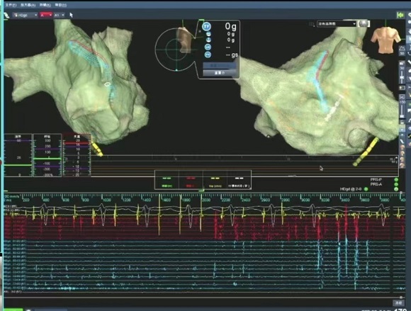 患者袁女士、67歲,常年受胸悶、氣促的影響輾轉(zhuǎn)多家省、市級(jí)醫(yī)院,曾行冠脈造影基本正常、心臟彩超檢查無明顯心臟瓣膜病變,診斷為:“心力衰竭 心房顫動(dòng)”,常年服用藥物治療,但效果不佳。近期,袁女士再因胸悶、氣短、心悸來我科住院治療,經(jīng)精心藥物治療后,使患者癥狀得以控制??紤]到患者的實(shí)際情況,蔡萍教授團(tuán)隊(duì)對(duì)患者病情進(jìn)行仔細(xì)分析,考慮為:“持續(xù)性心房顫動(dòng)并射血分?jǐn)?shù)降低的心力衰竭”, 房顫發(fā)作導(dǎo)致心功能下降,誘發(fā)心力衰竭。目前房顫治療的主要方式是射頻消融,傳統(tǒng)的環(huán)肺建模耗時(shí)較長,加之術(shù)中需冷鹽水灌注,患者存在長期心功能不全,術(shù)中難以長時(shí)間平躺?;谝陨侠щy,蔡萍教授團(tuán)隊(duì)經(jīng)術(shù)前充分討論后,決定使用新一代網(wǎng)狀高密度標(biāo)測導(dǎo)管(HD Grid)完成射頻消融術(shù)。該導(dǎo)管特定的閉環(huán)網(wǎng)狀設(shè)計(jì)、密集的電極間距和雙向感知的算法優(yōu)勢,使得術(shù)中短時(shí)間內(nèi)即對(duì)心房實(shí)現(xiàn)完整的基質(zhì)標(biāo)測。積極術(shù)前準(zhǔn)備后,于2022年11月17日由蔡萍教授、趙娟副主任、梁田責(zé)任總在該技術(shù)的輔助下對(duì)心房實(shí)施精準(zhǔn)消融,患者轉(zhuǎn)復(fù)竇性心律,歷時(shí)2小時(shí)余,手術(shù)順利完成。術(shù)后患者癥狀明顯改善、活動(dòng)耐力明顯提升,術(shù)后第3日復(fù)查心臟彩超EF值從術(shù)前36%提升至41%,LA從55mm縮小至49mm。目前患者已康復(fù)出院。