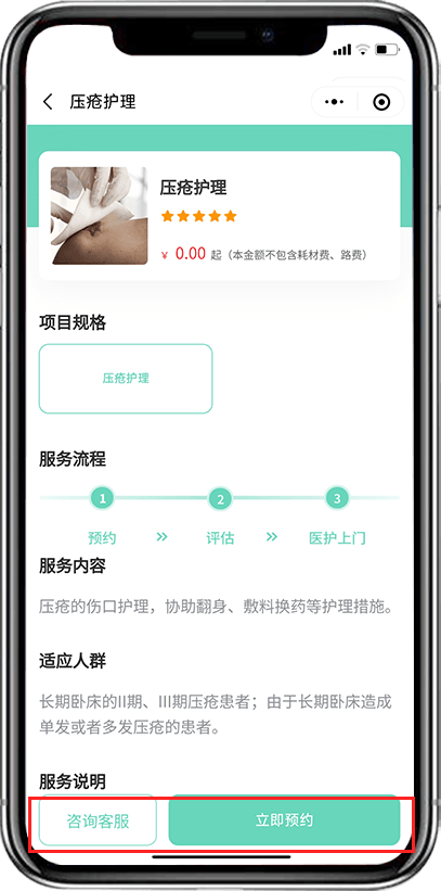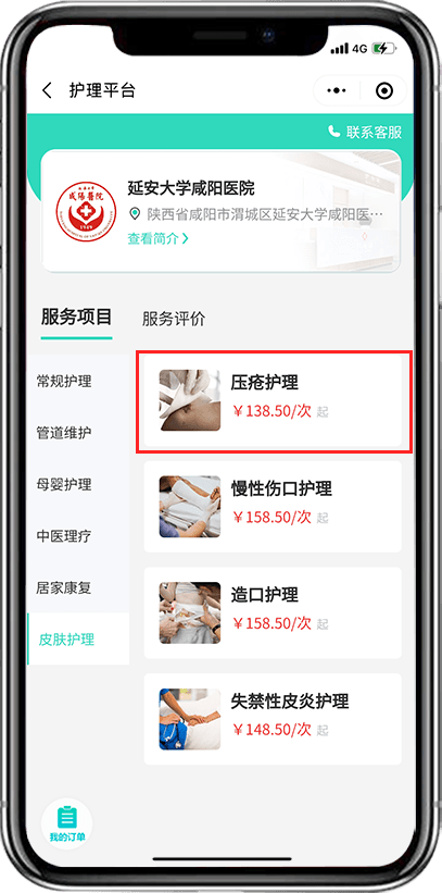 6、確認(rèn)無誤后點(diǎn)擊支付,等待護(hù)士聯(lián)系進(jìn)行護(hù)理項(xiàng)目評(píng)估