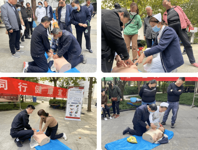宣講小組結(jié)合實際案例,為大家詳細講解心肺復(fù)蘇黃金4分鐘的重要性及如何快速評估患者、快速準確呼救、準確按壓。講解結(jié)束后,宣講小組現(xiàn)場模擬案例針對模擬人進行心肺復(fù)蘇示范,并詳細講解操作步驟及注意事項。