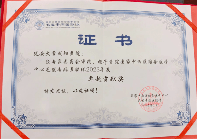2024年1月12日,由國家衛(wèi)健委毛發(fā)質(zhì)控項目專家委員會、國家中西醫(yī)結(jié)合醫(yī)學(xué)中心毛發(fā)專病醫(yī)聯(lián)體、北京整合醫(yī)學(xué)學(xué)會主辦的“第六屆國家中西醫(yī)結(jié)合醫(yī)學(xué)中心毛發(fā)專病醫(yī)聯(lián)體建設(shè)管理論壇暨頭皮健康管理培訓(xùn)班”在中日友好醫(yī)院講學(xué)廳順利召開,我院皮膚科陳小艷主任受邀參加。在優(yōu)秀醫(yī)聯(lián)體單位表彰儀式上,我院榮獲“國家中西醫(yī)結(jié)合醫(yī)學(xué)中心毛發(fā)專病醫(yī)聯(lián)體2023年度卓越貢獻(xiàn)獎”,同時獲獎的還有重慶市中醫(yī)院、廣州市皮膚病醫(yī)院、北京積水潭醫(yī)院、湘雅醫(yī)院。