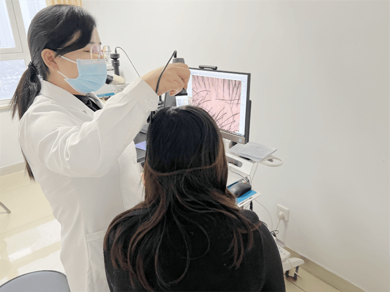 我院皮膚科毛發(fā)專診已開展八年,在陳小艷主任的帶領(lǐng)下,一直堅持鉆研創(chuàng)新,將其建設(shè)成為西北地區(qū)規(guī)模較大的三甲醫(yī)院毛發(fā)專診,并獲得“咸陽市2020年脫發(fā)性疾病綜合診療技術(shù)科技創(chuàng)新團(tuán)隊”,先后成為“國家衛(wèi)生健康委·中日友好醫(yī)院毛發(fā)專病醫(yī)聯(lián)體單位”、“中國西部毛發(fā)醫(yī)學(xué)專病聯(lián)盟委員單位”、“喜美恩頭皮項目臨床培訓(xùn)示范基地”、“妮雀娜Nutralla脫發(fā)物理治療臨床培訓(xùn)示范基地”、“發(fā)云康數(shù)字植發(fā)系統(tǒng)臨床培訓(xùn)示范基地”、“醫(yī)用臭氧外治臨床培訓(xùn)示范基地”。我科采用集頭皮醫(yī)學(xué)養(yǎng)護(hù)、頭皮疾病診療、非手術(shù)生發(fā)治療、植發(fā)于一體的一站式毛發(fā)診療體系,針對雄激素性脫發(fā)、女性型脫發(fā)、產(chǎn)后脫發(fā)、休止期脫發(fā)、斑禿等各種毛發(fā)疾病制定了個體化診療方案,中西結(jié)合,獲得了廣大患者的信賴和認(rèn)可,并取得全國知名度。