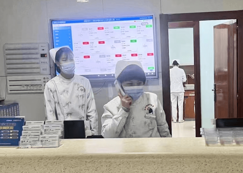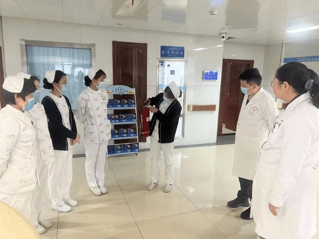 患者家屬緊急呼叫護士:“病房著火了!”責(zé)任護士立即攜帶滅火器前往病房確認火情,并開展滅火措施,因火情太大,樊靜護士長立即啟動緊急應(yīng)急預(yù)案。