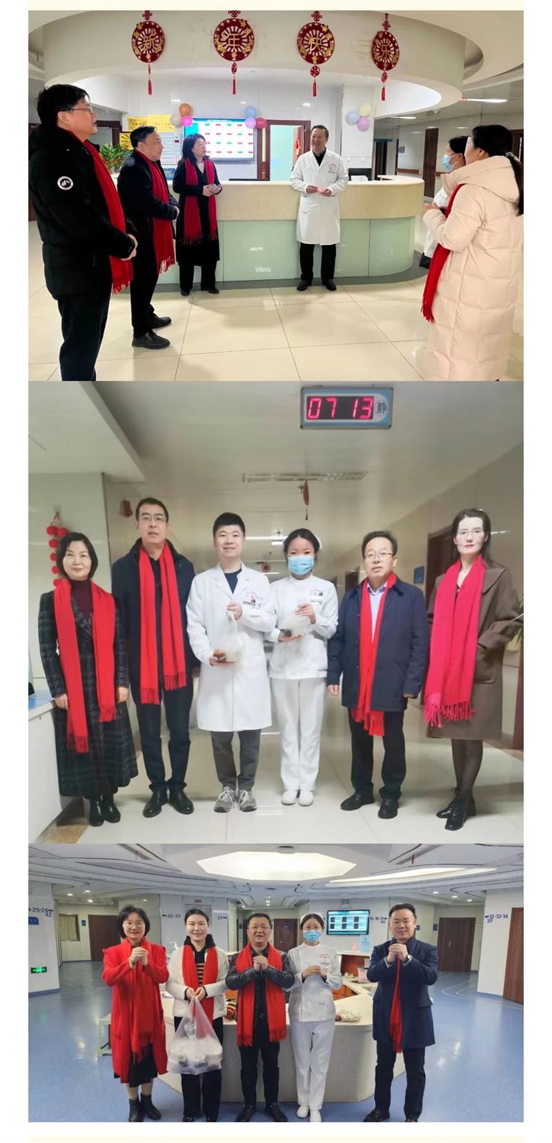 “新年快樂(lè)!”“大家辛苦了!”在給大家送上新年祝福的同時(shí),院領(lǐng)導(dǎo)向堅(jiān)守一線(xiàn)的醫(yī)護(hù)人員表示感謝,并囑托大家一定抓好質(zhì)量和安全,為患者做好診療服務(wù)。醫(yī)護(hù)人員紛紛表示,“請(qǐng)領(lǐng)導(dǎo)放心,我們一定不辱使命”。