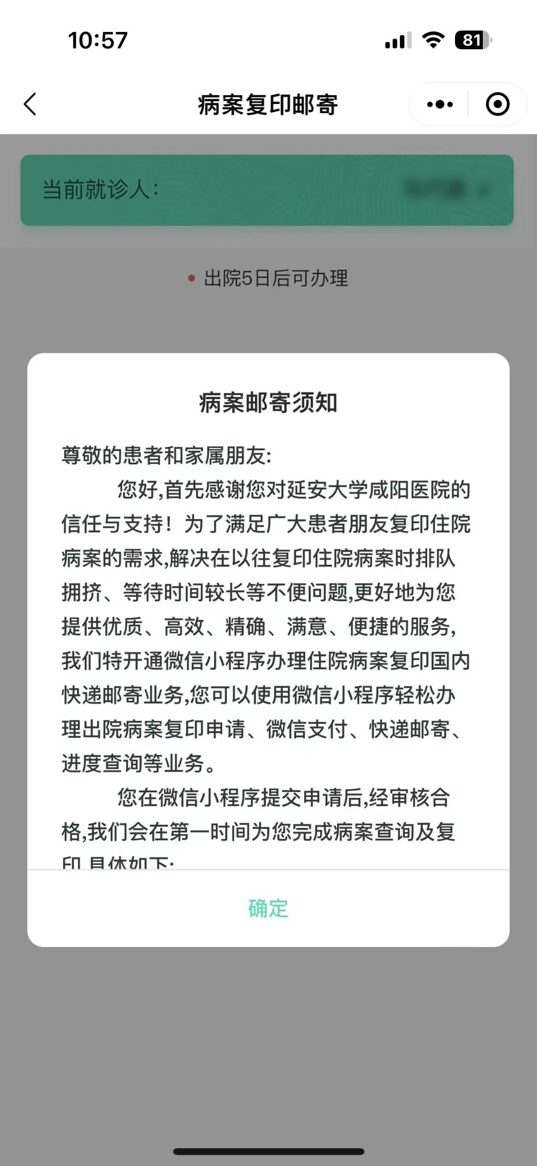 延安大學(xué)咸陽(yáng)醫(yī)院:無(wú)需親自前往,病歷復(fù)印也能輕松郵寄到家