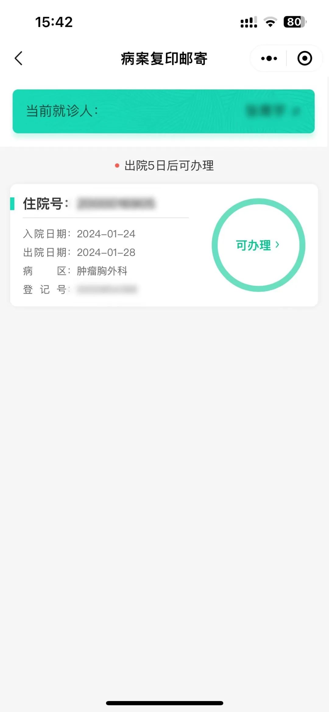 辦理時(shí)限:患者辦理出院手續(xù)后5個(gè)工作日。