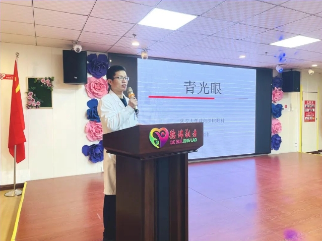隨后,眼科楊維剛副主任醫(yī)師通過(guò)多媒體課件進(jìn)行了青光眼科普講座。他講到青光眼青光眼是由于不同原因所導(dǎo)致的特殊的視神經(jīng)退行性改變,并有視野缺損等視功能改變的一類(lèi)疾病。眼壓升高是其主要的危險(xiǎn)因素。青光眼是全球首位不可逆性致盲性眼病,僅我國(guó)就有2000萬(wàn)青光眼患者,致盲人數(shù)達(dá)567萬(wàn)。這是一種全年齡疾病的表現(xiàn),尤其是40歲以上的人群更容易受到其影響。如果不及時(shí)診治,可能會(huì)導(dǎo)致不可逆轉(zhuǎn)的視野缺損、視神經(jīng)萎縮、視力下降,甚至導(dǎo)致完全失明,對(duì)于老年人,眼睛疾病的早篩查、早診斷、早治療非常重要。