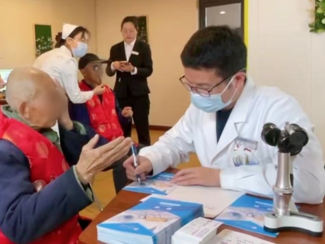 科普講座結(jié)束后,眼科醫(yī)護(hù)團(tuán)隊(duì)各司其職,為各位老人分別檢查視力、測(cè)量眼壓,楊維剛醫(yī)師還通過(guò)裂隙燈、檢眼鏡為老人們進(jìn)行眼底檢查,對(duì)每位老人的檢查結(jié)果進(jìn)行詳細(xì)講解,提供診療意見(jiàn)和日常生活指導(dǎo),并耐心解答老人們提出的保健問(wèn)題,現(xiàn)場(chǎng)歡聲一片,受到敬老院護(hù)理員及老人們的一致好評(píng)!