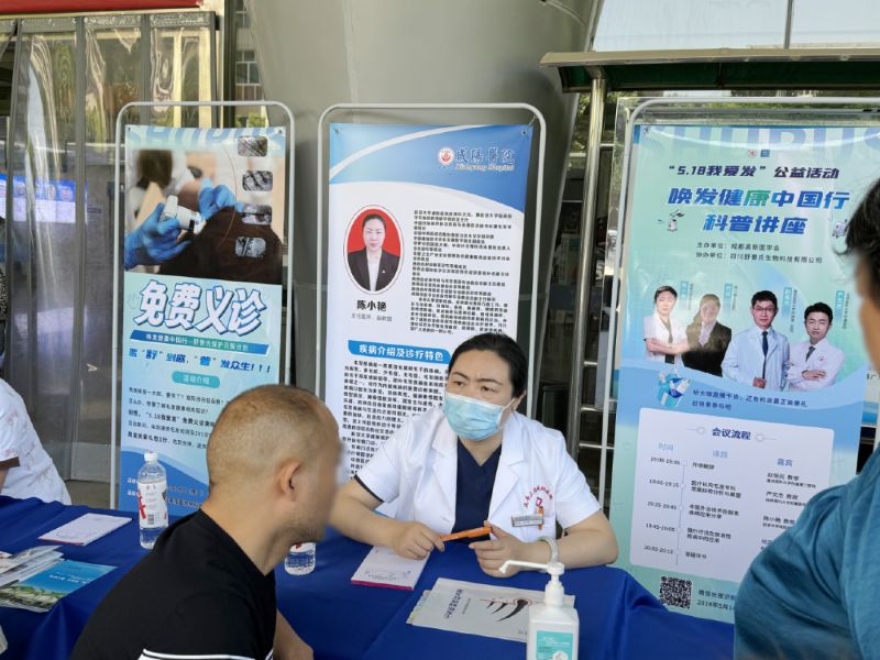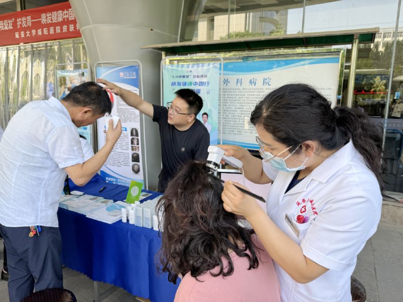 2024年5月14日,在延安大學(xué)咸陽醫(yī)院外科病院前,皮膚科主任陳小艷帶領(lǐng)皮膚科工作人員免費為患者進(jìn)行毛發(fā)疾病及其他皮膚病義診,并給予診療指導(dǎo)和健康宣教。呼吁大家要積極做好“愛發(fā)、護(hù)發(fā)、養(yǎng)發(fā)”,重視頭皮毛發(fā)疾患,提升大家對毛發(fā)健康問題的重視,傳播正確的毛發(fā)健康知識,宣傳正確的毛發(fā)疾病防治措施,提高大家的毛發(fā)健康水平。