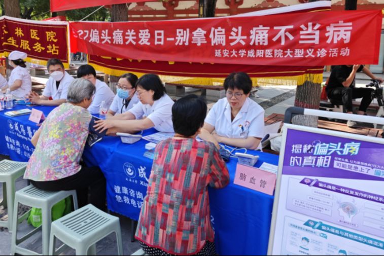 為了加強(qiáng)偏頭痛疾病的科普,5月23日,延安大學(xué)咸陽醫(yī)院神內(nèi)十病區(qū)張東亞主任、神內(nèi)五病區(qū)王敏主任及周鑫醫(yī)生在咸陽市鐘樓廣場(chǎng)進(jìn)行了偏頭痛義診活動(dòng)。本次活動(dòng)主題:“別拿偏頭痛不當(dāng)病”?;顒?dòng)現(xiàn)場(chǎng),對(duì)偏頭痛疾病的識(shí)別、治療、預(yù)防等話題進(jìn)行深入淺出的講解,與前來就診的患者面對(duì)面交流,耐心的為他們做基礎(chǔ)檢查,并對(duì)他們提出的問題進(jìn)行詳細(xì)解答,現(xiàn)場(chǎng)帶領(lǐng)大家一起進(jìn)行偏頭痛風(fēng)險(xiǎn)篩查,指導(dǎo)廣大頭痛患者掌握緩解頭痛的簡(jiǎn)單方法。