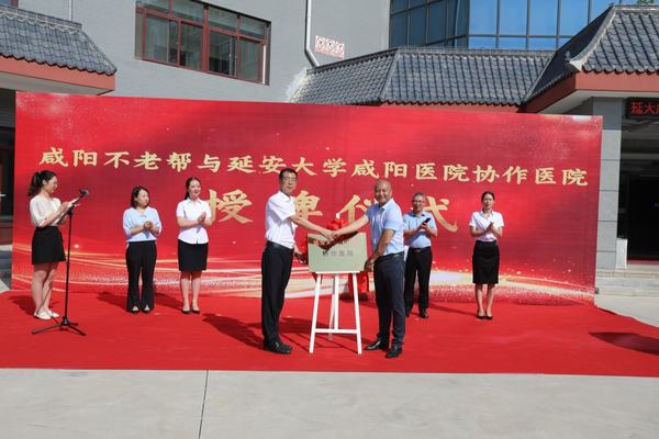 7月13日上午,延安大學(xué)咸陽醫(yī)院院長助理沙寧、宣傳部部長趙莉、宣傳部科長宋瑤及各科室專家一行,赴咸陽市渭城區(qū)“不老幫”智慧健康養(yǎng)老中心舉行共建協(xié)作醫(yī)院簽約暨揭牌儀式。咸陽不老幫智慧養(yǎng)老有限公司董事長王燁、總經(jīng)理王茸茸等領(lǐng)導(dǎo)和職工代表出席了儀式。