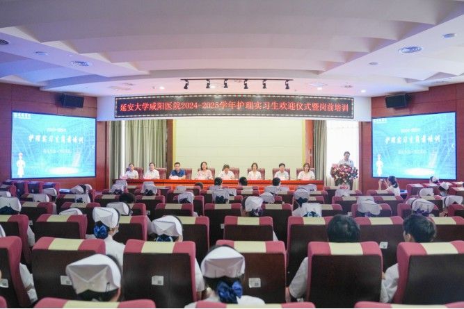 臨床實習(xí)是學(xué)校教育的延伸,是專業(yè)理論與實踐相結(jié)合的關(guān)鍵。為進(jìn)一步規(guī)范實習(xí)生管理,幫助護(hù)理實習(xí)生盡快完成角色轉(zhuǎn)換,保障實習(xí)期間護(hù)理安全,延安大學(xué)咸陽醫(yī)院護(hù)理教學(xué)管理委員會于2024年7月18日-7月20日,在腦血管病院第三學(xué)術(shù)廳召開“2024-2025年度護(hù)理實習(xí)生歡迎儀式暨崗前培訓(xùn)”。院長助理兼護(hù)理部主任楊敏、科研教學(xué)管理中心副主任陳青、護(hù)理教學(xué)管理委員會主任委員黨文婷、消防科科長郭俊鵬、感染控制辦公室干事樊格以及全體教學(xué)委員會委員出席了開幕式,來自延安大學(xué)西安創(chuàng)新學(xué)院等8所學(xué)校154名護(hù)理實習(xí)生參加培訓(xùn),會議由護(hù)理部教學(xué)干事孫姣姣主持。