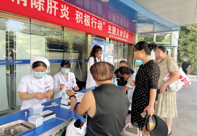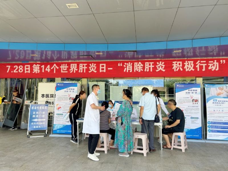 2024年7月28日是第14個(gè)“世界肝炎日”,今年我國(guó)的宣傳主題是“消除肝炎,積極行動(dòng)”。為進(jìn)一步提升全民病毒性肝炎防治及篩查意識(shí),盡早發(fā)現(xiàn),積極治療,同時(shí)最大限度遏制新發(fā)感染,切實(shí)減輕疾病帶來(lái)的負(fù)擔(dān),盡早實(shí)現(xiàn)“到2030年消除病毒性肝炎”的戰(zhàn)略目標(biāo)。延安大學(xué)咸陽(yáng)醫(yī)院感染性疾病科積極響應(yīng)政府號(hào)召,于2024年7月26日,積極組織科室人員,在內(nèi)科樓前開(kāi)展了豐富多彩的宣傳活動(dòng)。