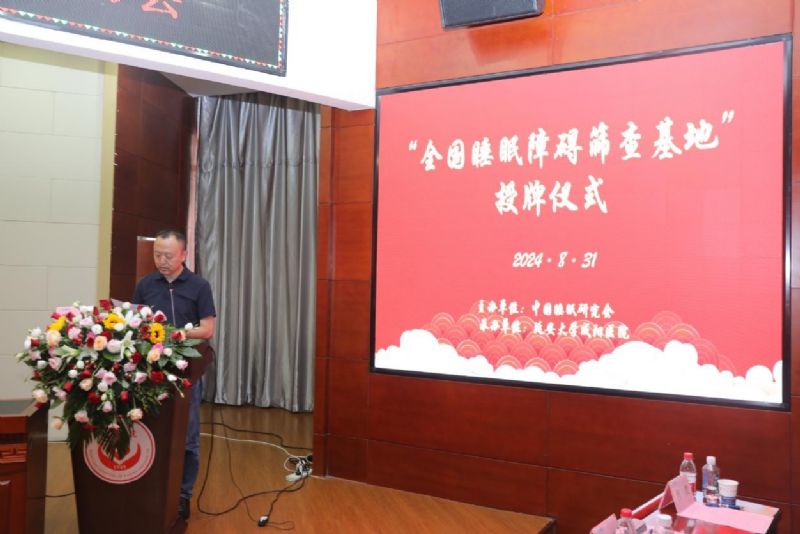開幕式第二個環(huán)節(jié)由延安大學(xué)咸陽醫(yī)院陳青院長助理主持。中國睡眠研究會常務(wù)理事、空軍軍醫(yī)大學(xué)唐都醫(yī)院宿長軍教授代表中國睡眠研究會,宣讀延安大學(xué)咸陽醫(yī)院睡眠醫(yī)學(xué)團(tuán)隊(duì)獲批“全國睡眠障礙篩查基地”文件,并向團(tuán)隊(duì)授牌。