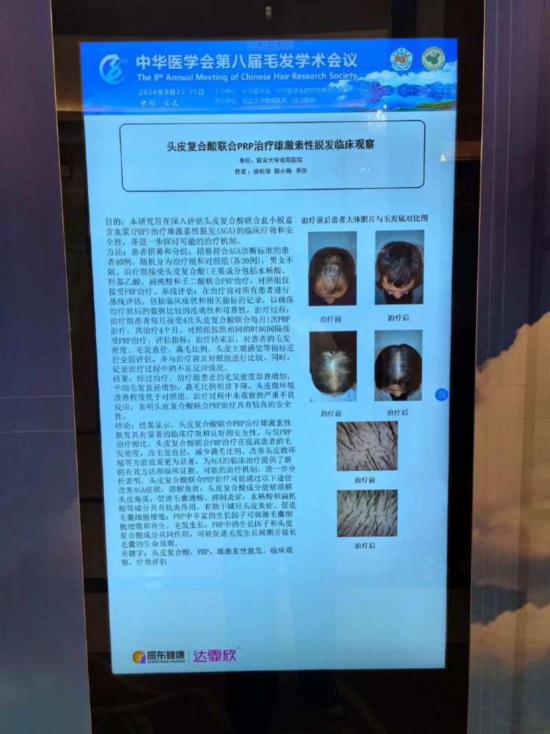 姚松領(lǐng)醫(yī)生的“頭皮復(fù)合酸聯(lián)合PRP治療雄激素性脫發(fā)臨床觀察”論文被壁報展出,評為優(yōu)秀論文,深受各位學(xué)者的贊揚。