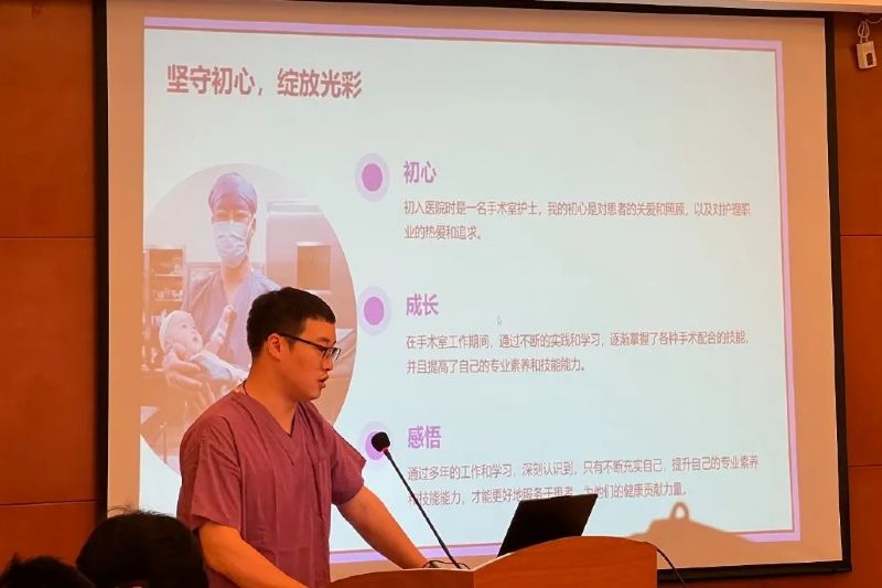 新入職男護士代表趙澤在發(fā)言中與大家分享了自己入職以來的成長經(jīng)歷,并呼吁大家堅定信念、攜手共進、披荊斬棘,在護理這條充滿光明和夢想的道路上越走越遠,守護生命的花開,四季恒長!
