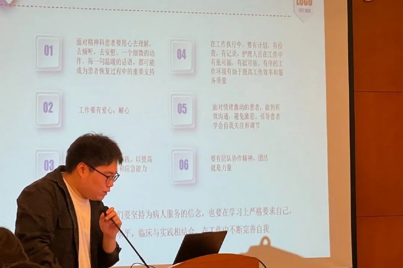 接下來2024年新入職男護士在破冰環(huán)節(jié)中依次作自我介紹,這不僅加深了他們之間的相互了解,還促進了團隊的融合。同時也展示了新護士們的個性,增強了他們的歸屬感,并激發(fā)了他們的工作動力。