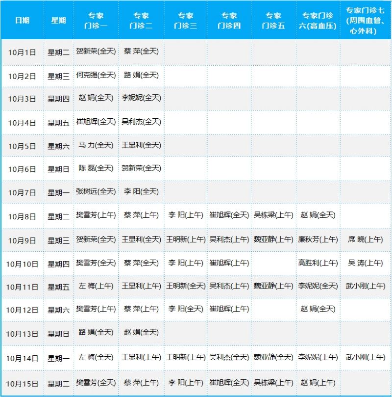 心血管病院門診排班表