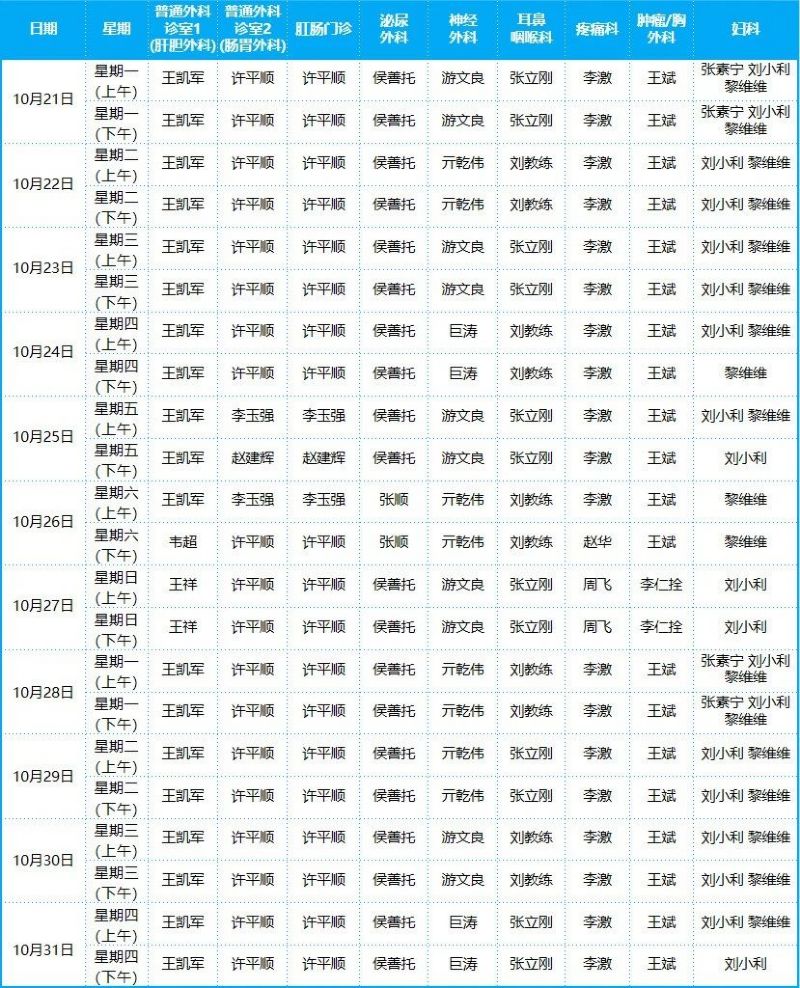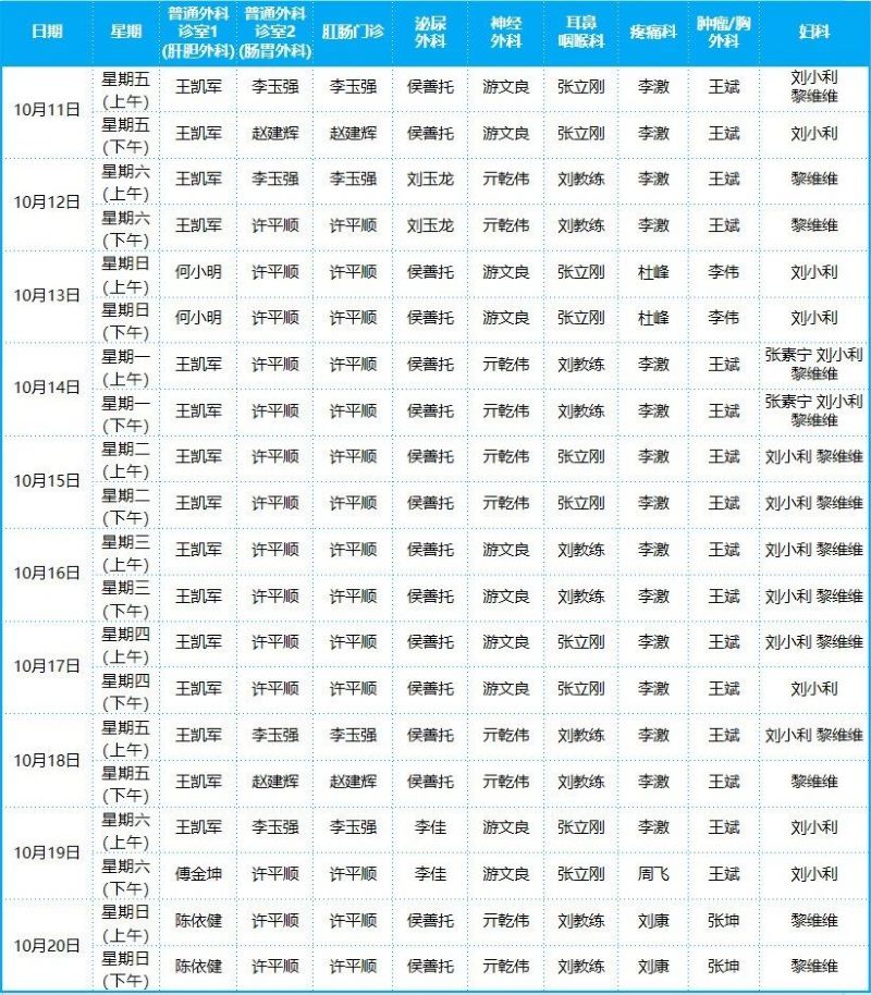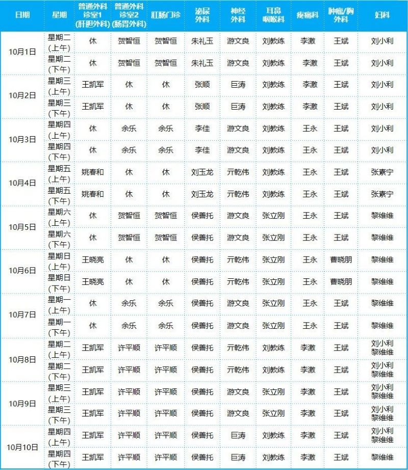 2024年10月份門診排班表