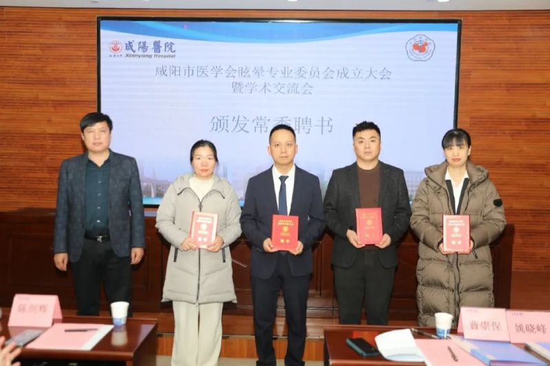 延安大學(xué)咸陽醫(yī)院姚曉峰院長首先在會上致歡迎辭。咸陽市醫(yī)學(xué)會副會長張飛飛宣讀《咸陽市醫(yī)學(xué)會關(guān)于成立咸陽市醫(yī)學(xué)會眩暈專業(yè)委員會的通知》,我院神經(jīng)內(nèi)科主任張桂芳當(dāng)選主任委員,陜西中醫(yī)藥大學(xué)第二附屬醫(yī)院神經(jīng)內(nèi)科主任張潤寧、陜西核工業(yè)二一五醫(yī)院神經(jīng)內(nèi)科主任付鋒、咸陽市中心醫(yī)院神經(jīng)內(nèi)科主任吳軍、陜西中醫(yī)藥大學(xué)附屬醫(yī)院腦病醫(yī)院四病區(qū)主任袁有才、延安大學(xué)咸陽醫(yī)院耳鼻喉科主任張立剛、咸陽市第一人民醫(yī)院神經(jīng)內(nèi)科主任趙錦華6人當(dāng)選副主任委員,延安大學(xué)咸陽醫(yī)院神經(jīng)內(nèi)科責(zé)任總醫(yī)師夏輝任秘書長。