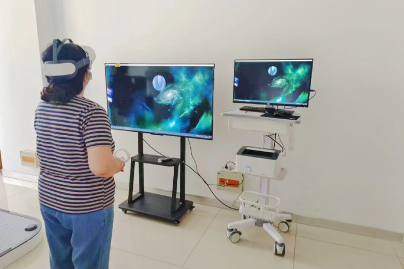 前庭康復(fù)是利用神經(jīng)的可塑性,通過適應(yīng)、習(xí)服和替代機(jī)制,使前庭功能得到強(qiáng)化,是減輕平衡障礙、頭暈及眩暈,是頭暈、失衡、暈車的克星。VR前庭康復(fù)訓(xùn)練儀可針對(duì)不同患者采取個(gè)性化的訓(xùn)練方案,對(duì)年齡大、行動(dòng)不便及臥床患者能在床邊進(jìn)行康復(fù),對(duì)于急性期患者也能在床上進(jìn)行康復(fù)。