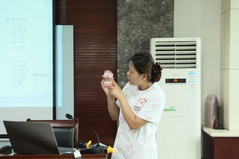 口腔病院周寧寧護(hù)士通過生動(dòng)有趣的PPT和實(shí)物模型,為孩子們講解了牙齒結(jié)構(gòu)、齲齒形成的原因,教會(huì)孩子們正確刷牙方法及日常飲食中護(hù)齒知識(shí)。孩子們聽得津津有味,紛紛舉手參與互動(dòng)。