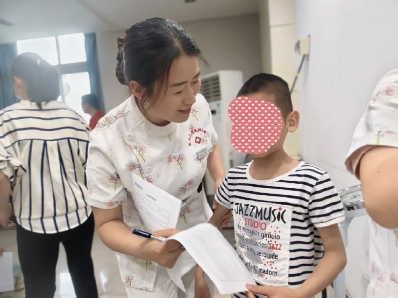 劉巧云護(hù)士長(zhǎng)帶領(lǐng)醫(yī)護(hù)人員為孩子們進(jìn)行了生長(zhǎng)發(fā)育評(píng)估和視力測(cè)試,并對(duì)其口腔、語言、運(yùn)動(dòng)、社交能力等方面進(jìn)行了專業(yè)評(píng)估,醫(yī)護(hù)人員詳細(xì)記錄并反饋結(jié)果,為每位兒童建立生長(zhǎng)發(fā)育健康檔案,并向福利院工作人員提供專業(yè)的健康指導(dǎo)建議。