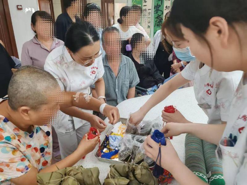 活動(dòng)最后,科室護(hù)士長(zhǎng)及主任到患者床頭為每一位患者發(fā)粽子及彩繩。伴隨著節(jié)日的歡聲笑語(yǔ),本次端午活動(dòng)進(jìn)入尾聲。