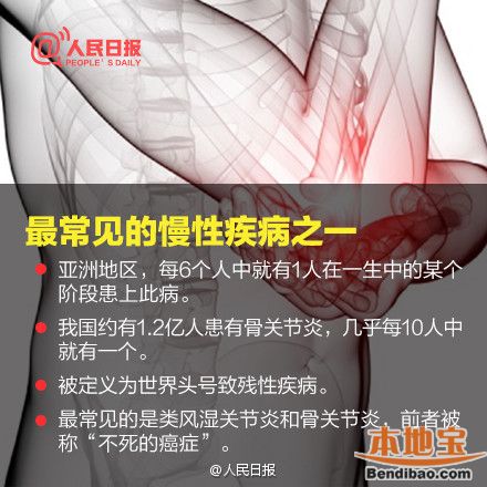 10月12日是世界關(guān)節(jié)炎日,今年的主題是保護(hù)關(guān)節(jié),從年輕開始!目前全世界關(guān)節(jié)炎患者有3.55億人。在亞洲地區(qū),每六個人中就有一人在一生的某個階段患上關(guān)節(jié)炎這種世界頭號致殘性疾病。目前估計中國大陸的關(guān)節(jié)炎病人有1億以上,而且人數(shù)還在不斷增加。